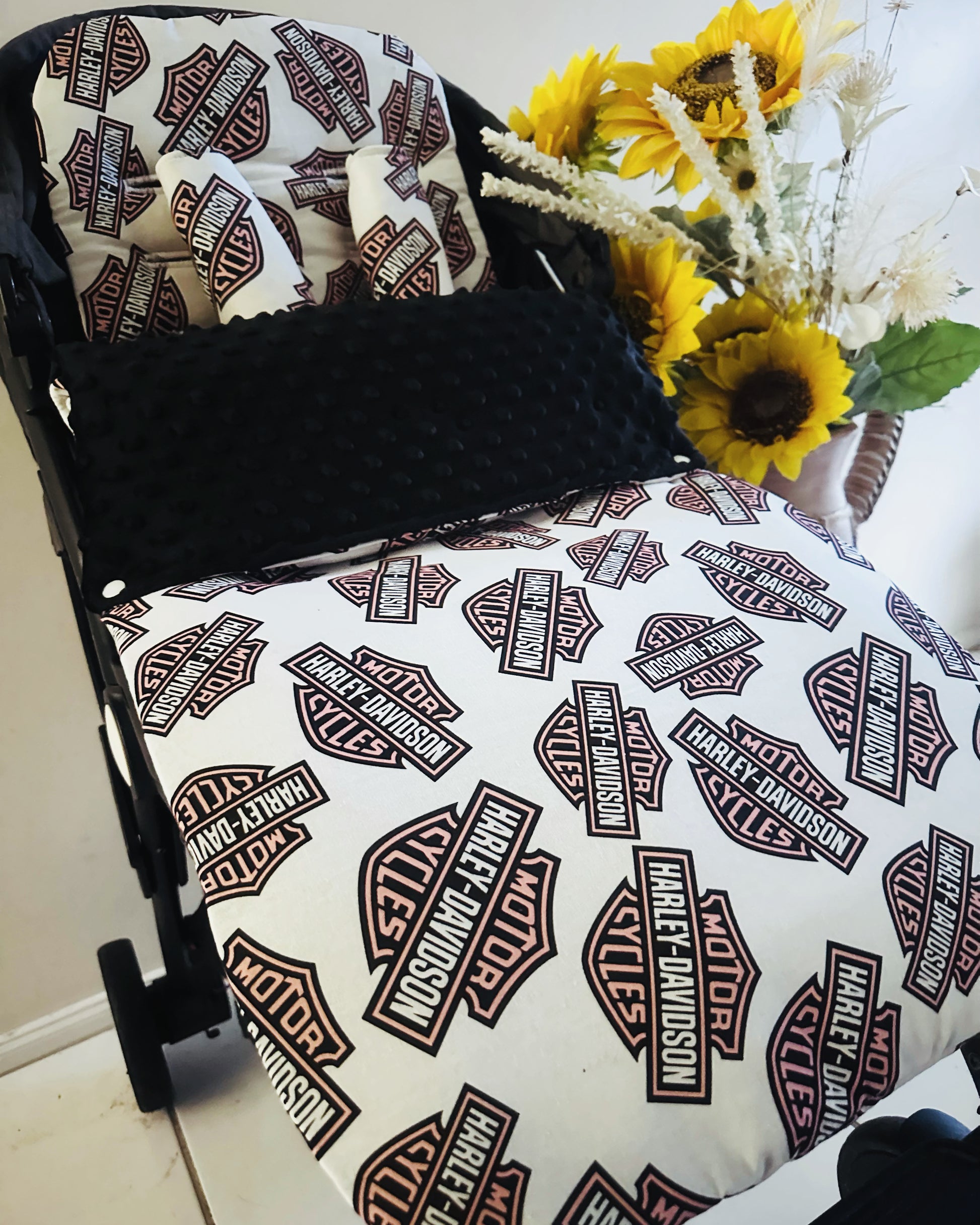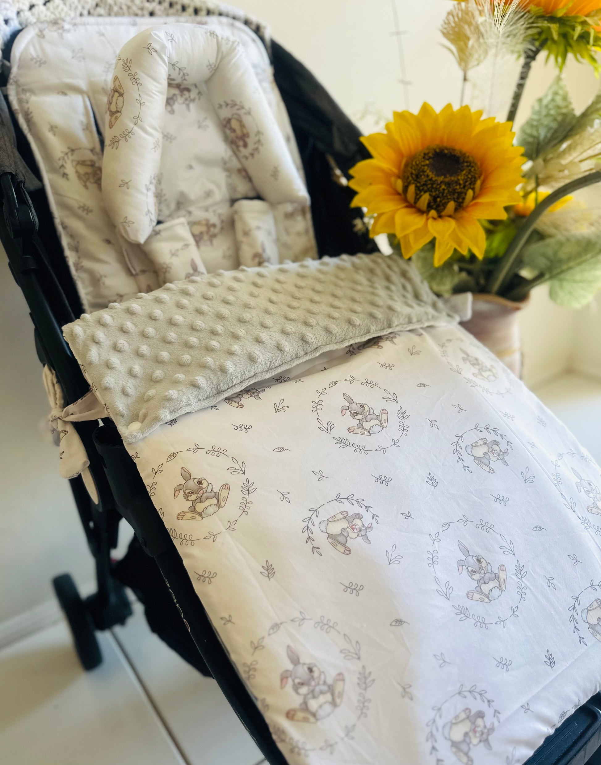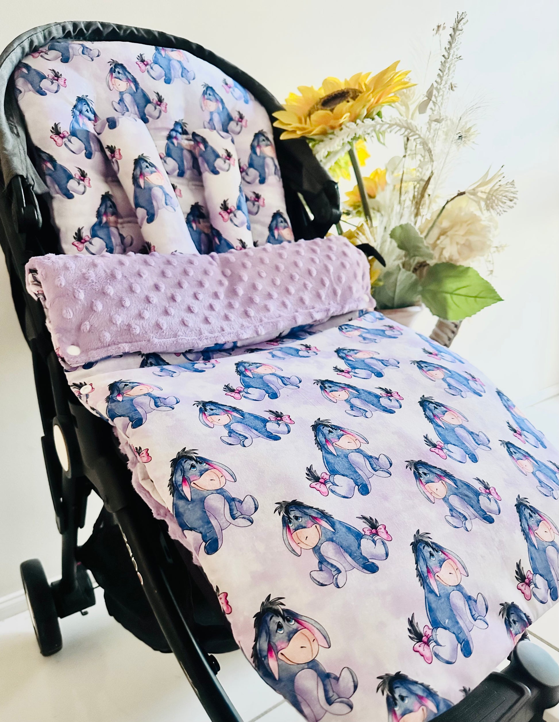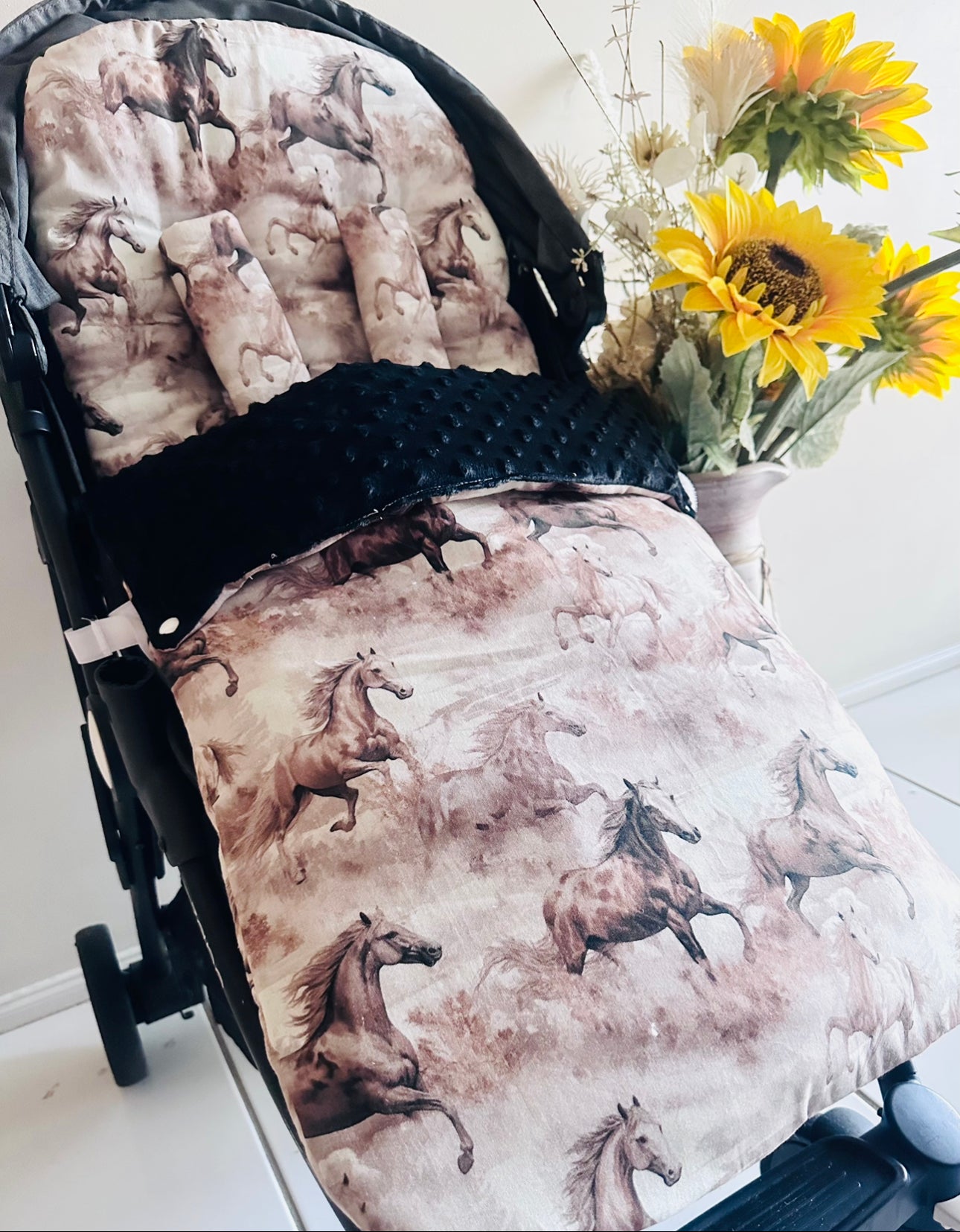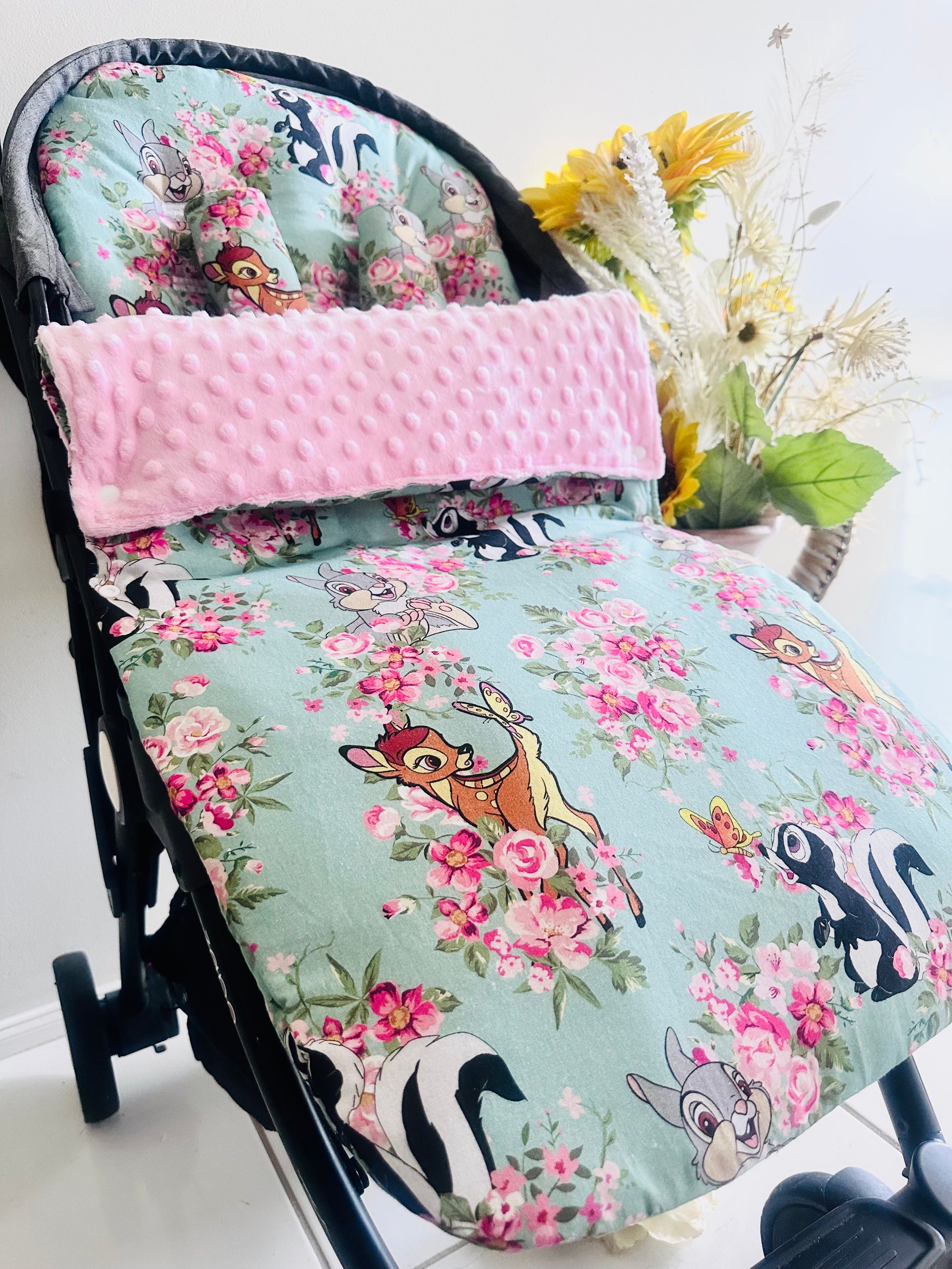 Introducing our beautiful Footmuff Full Set’s. Sets include:- 1 Pram Liner | 2 Free Belt Covers | 1 Footmuff ** Optional Head Insert. Our Sets are backed with gorgeously soft dot minky fleece with an option to add extra padding and water resistance to the pram liner! **All Footmuff’s are universal, fully adjustable with ties or Velcro straps, pram liners can be customised however :)**