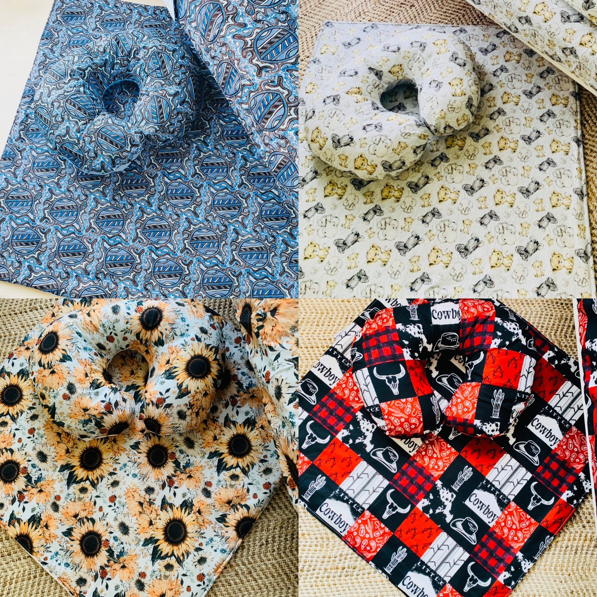 Our beautiful playmats are a great addition to bubs nursery family room or even out and about, providing the perfect and safe spot for bub to explore. We make them in two sizes:-